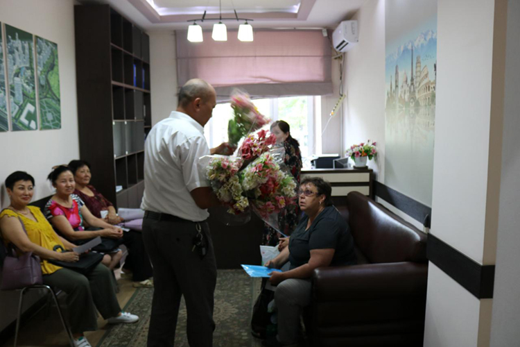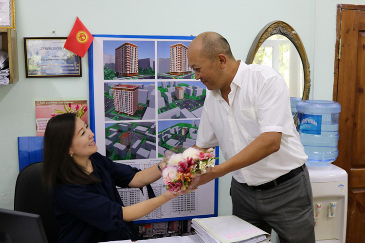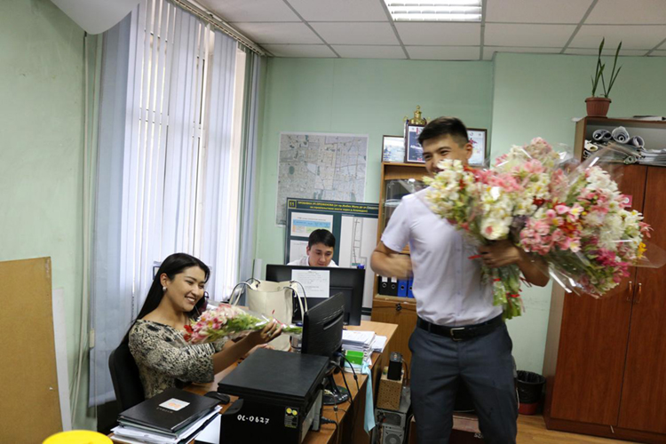Житель столицы Евгений Николаев продолжает одаривать сотрудниц муниципальных предприятий цветами. На этот раз букеты он вручил женской половине Бишкекглавархитектуры. Об этом сообщили в пресс-службе мэрии.