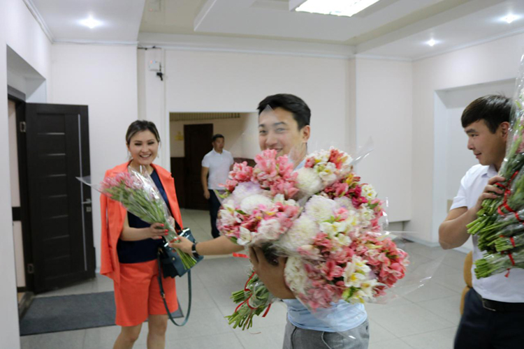 Ранее Евгений Николаев преподнес букеты сотрудницам «Тазалыка» и Бишкекводоканала.