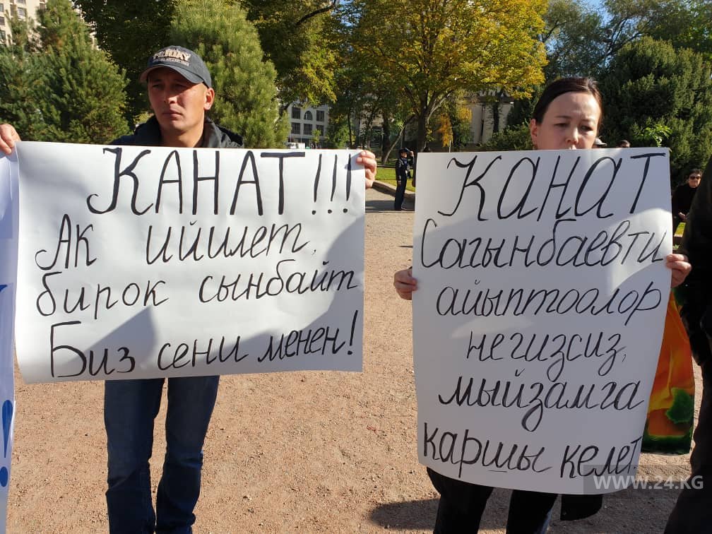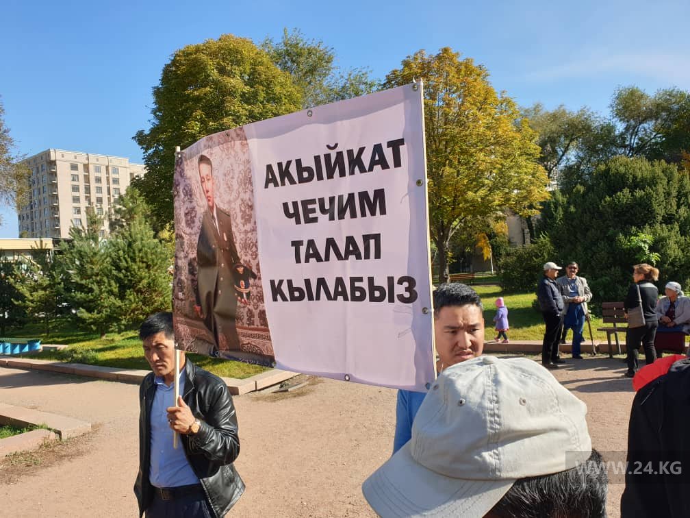 В Бишкеке в сквере имени Максима Горького проходит митинг в поддержку телохранителя бывшего президента Алмазбека Атамбаева Каната Сагымбаева.