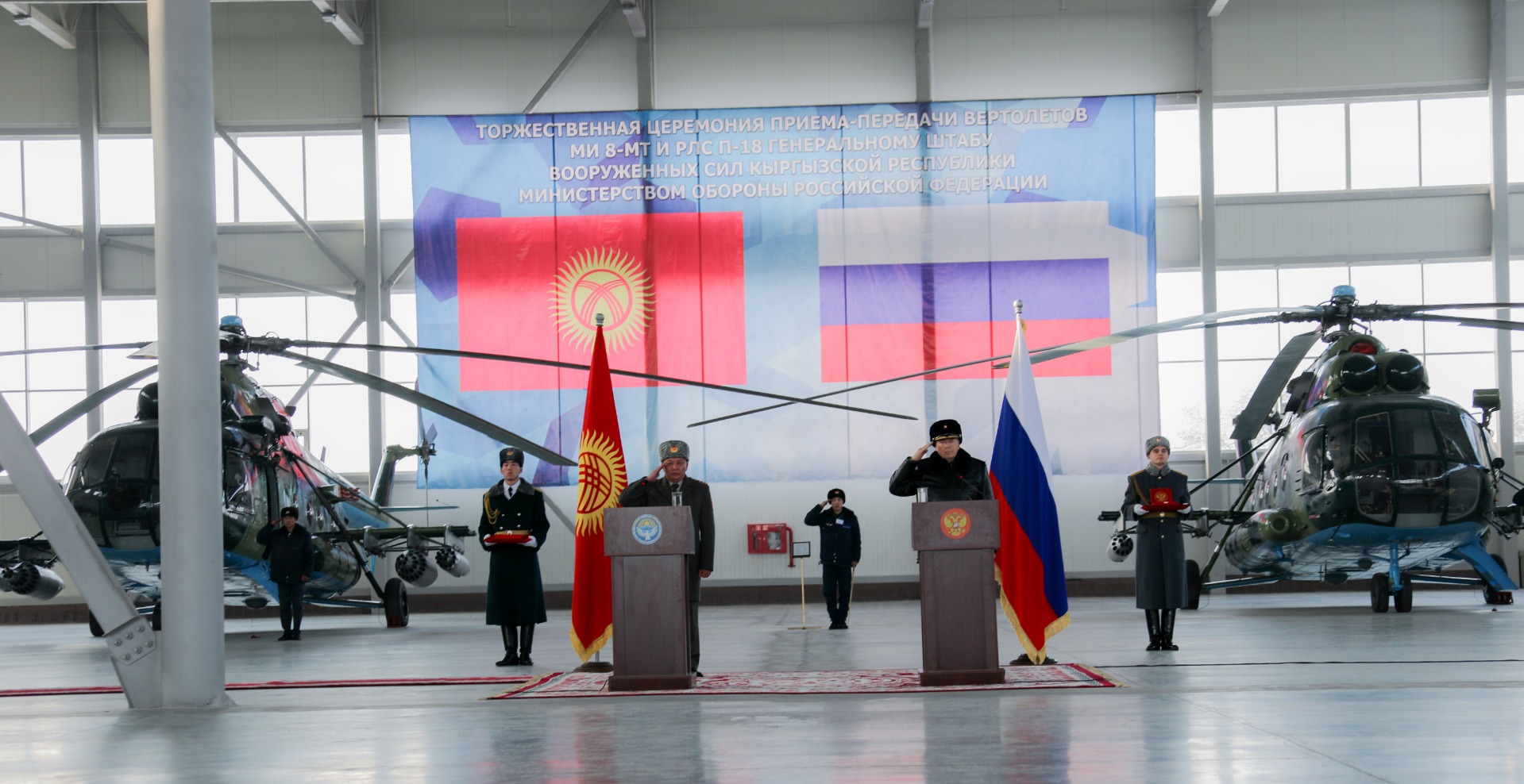 Министерство обороны РФ передало Вооруженным силам Кыргызстана в качестве безвозмездной военно-технической помощи два вертолета МИ-8МТ и радиолокационные станции П-18. Об этом сообщили в пресс-службе Генштаба.