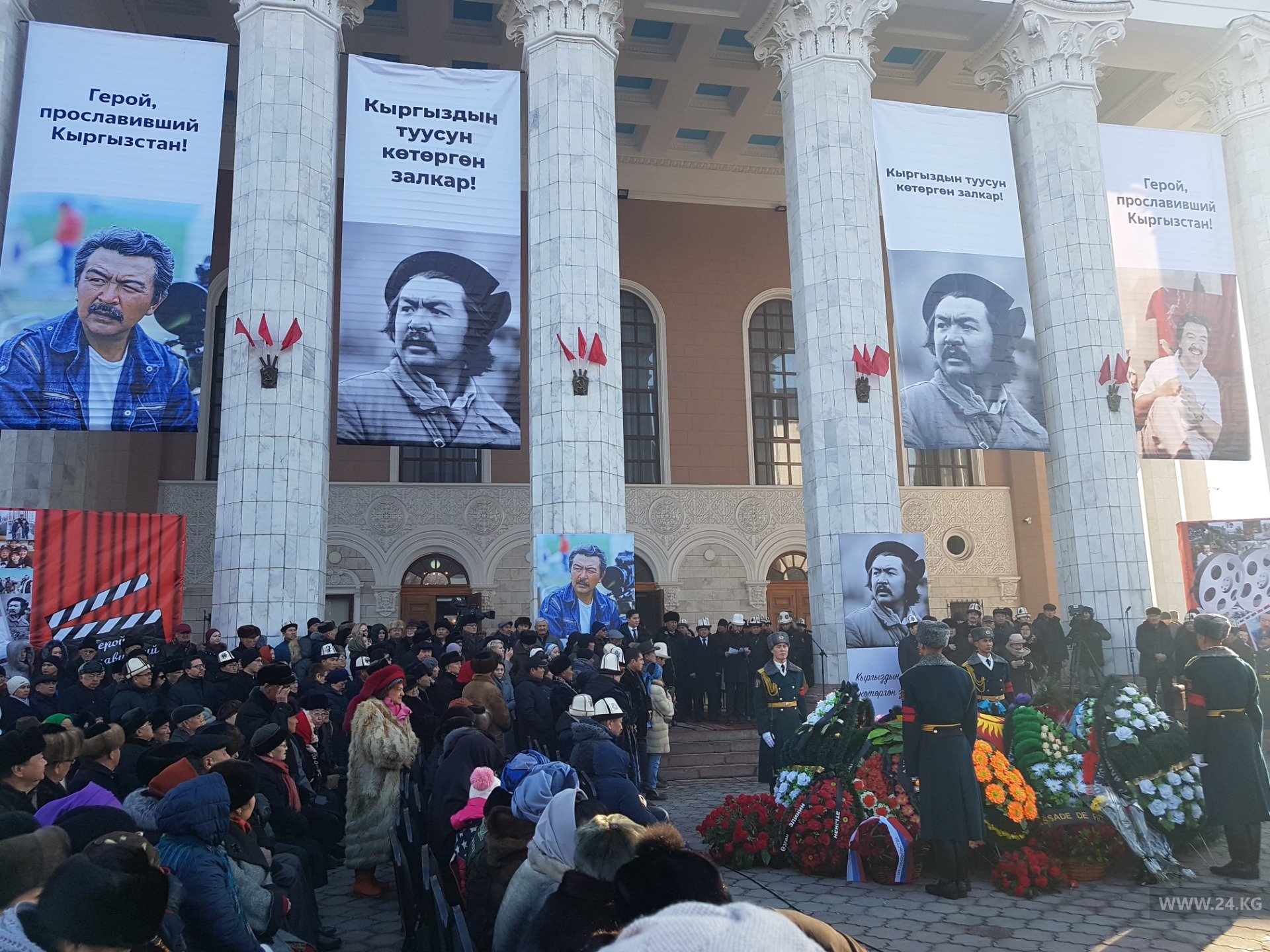 С речью выступили спикер парламента Дастан Джумабеков, первый вице-премьер-министр Кубатбек Боронов, представители иностранных дипмиссий в КР, политики, деятели искусства и культуры, а также родственники режиссера.