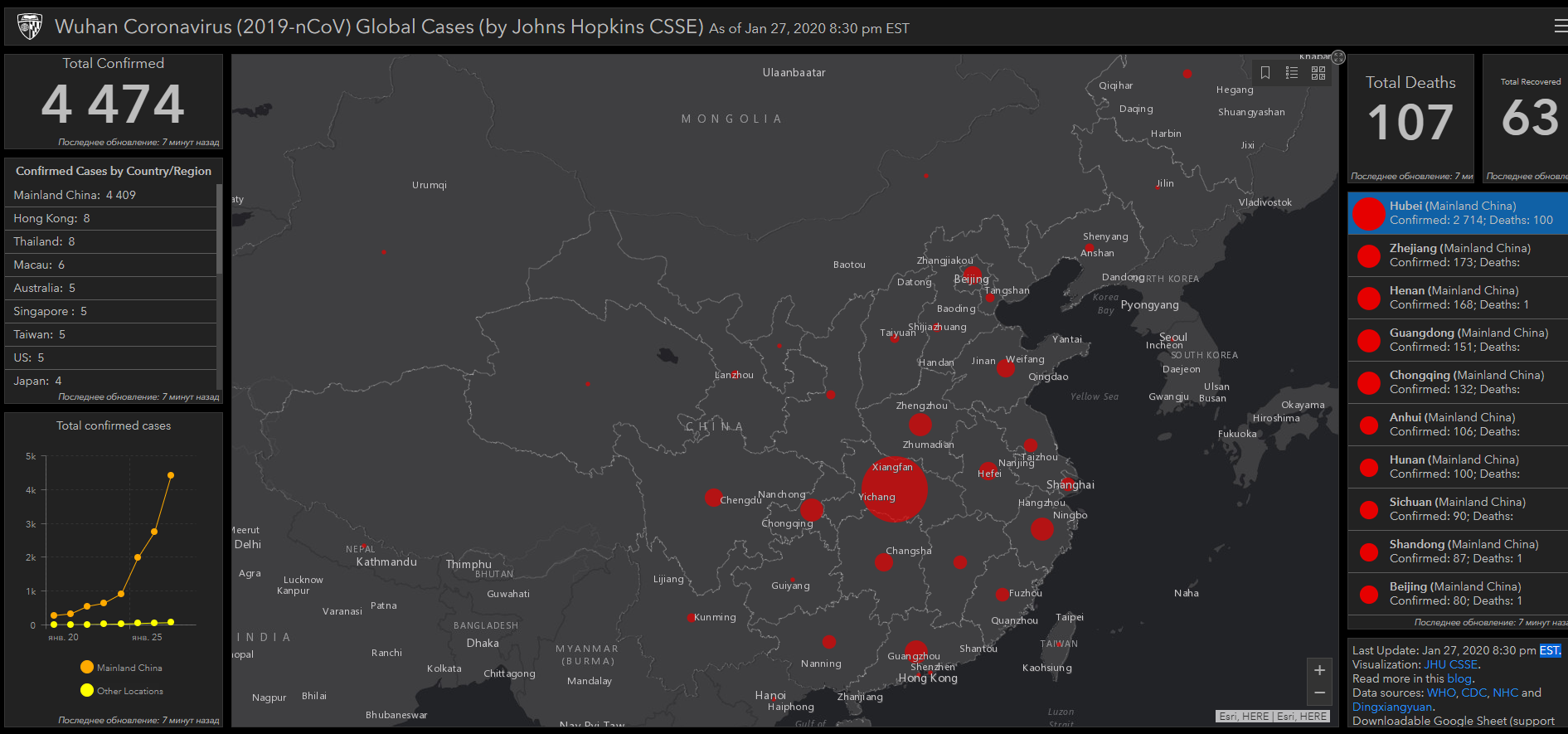 Данные о распространении вируса представлены на 20.30 27 января 2020 года (7.30 28 января по Бишкеку).