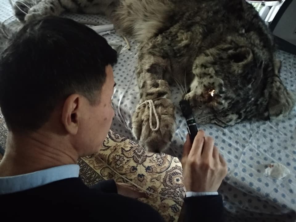 По их данным, снежного барса осмотрели заведующий кафедрой офтальмологии КРСУ профессор Михаил Медведев и врачи Национального госпиталя офтальмологии Нурлан Тургунбаев и Александр Островерхов.