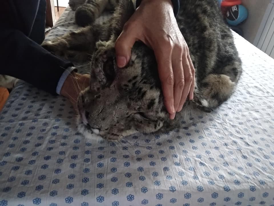 Найденный раненным на дереве в лесу Таласской области Жаабарс ослеп на оба глаза. Об этом сообщили в ОФ «Бугу Эне» на своей странице в соцсетях.