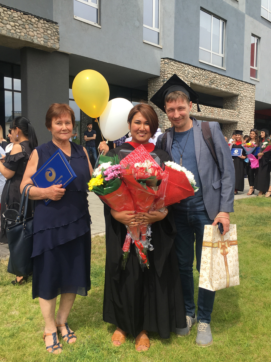 Екатерина Санамянц приехала в Кыргызстан из соседнего Таджикистана в 2010 году и осталась. Поступила в АУЦА, окончила с отличием, вышла замуж. Супруг Борис работает в сфере образования: преподает в Инновационном колледже АУЦА, а еще он веб-дизайнер.