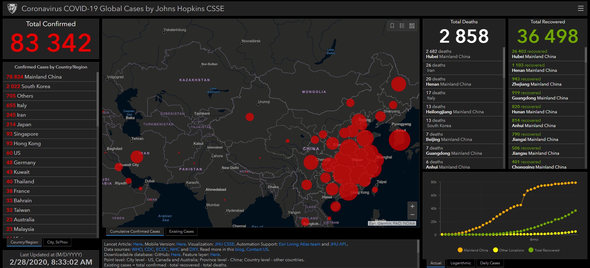 На сегодня общее число заразившихся новым коронавирусом достигло 83 тысяч 342 человек. Об этом свидетельствуют данные онлайн-карты, разработанной учеными.