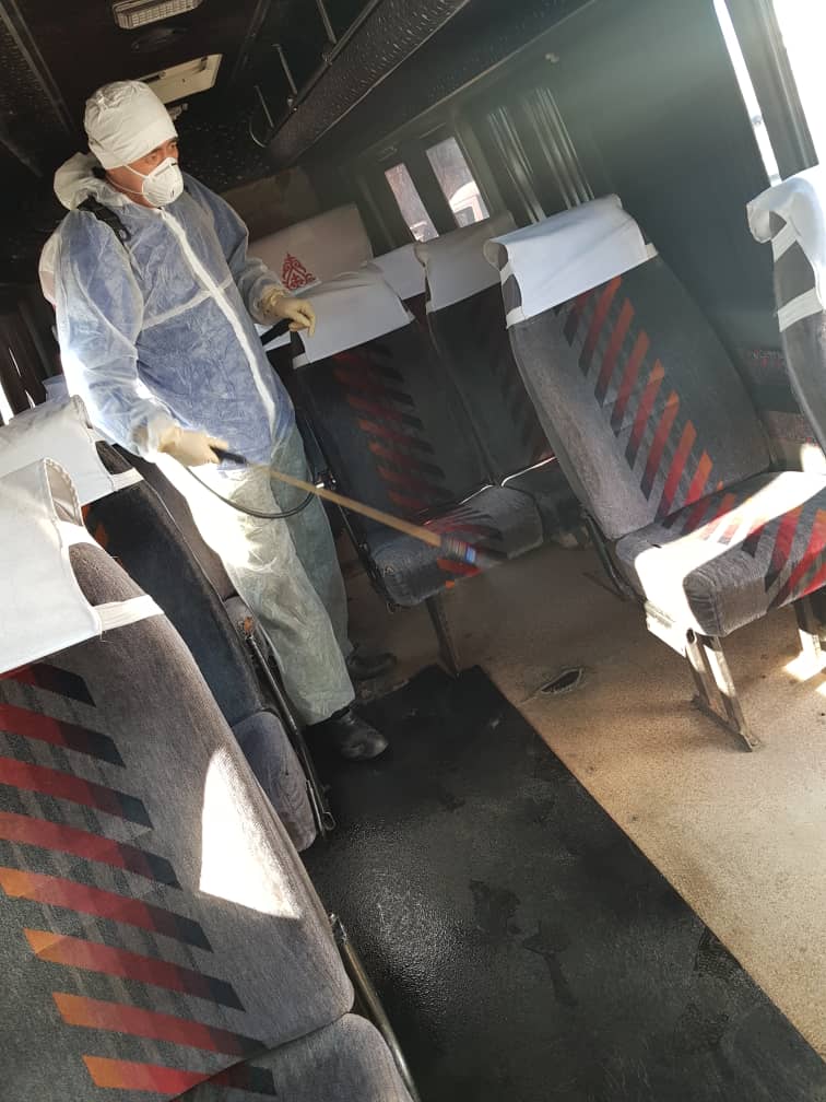 Водителей перед рейсом осматривают в наркологических пунктах — имеется ли у него температура, а администрация предприятий проверяет наличие и укомплектованность медицинских аптечек, гигиеническое состояние пассажирского салона автотранспорта, наличие дезинфицирующих средств.