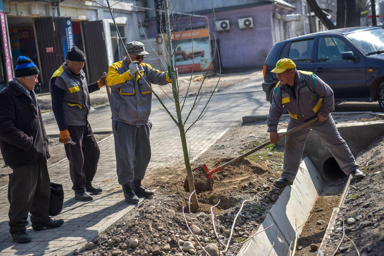 Бишкекзеленхоз приступил к весенним посадкам деревьев. По улице Тоголока Молдо от проспекта Жибек Жолу до улицы Саадаева появились 50 саженцев клена, еще 80 появились на улице Орозбекова до улицы Щербакова.