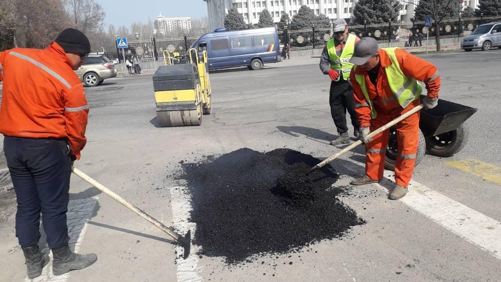 В Бишкеке начали ямочный ремонт дорог и посадку деревьев. Об этом сообщили в пресс-службе столичной мэрии.