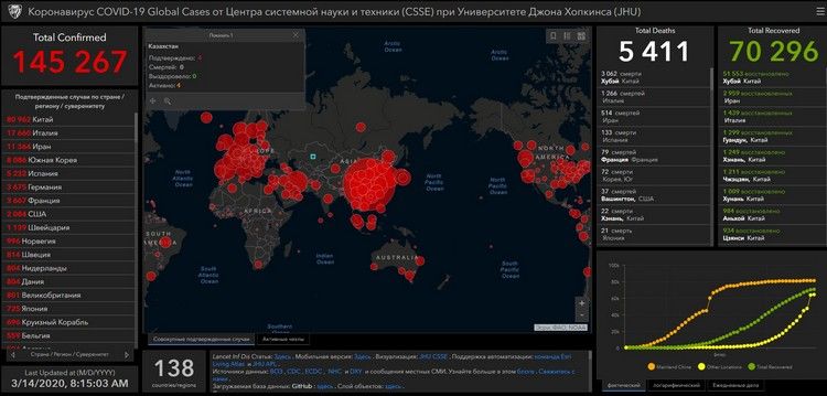 Число погибших от коронавируса во всем мире достигло 5 тысяч 411 человек. Об этом свидетельствуют данные онлайн-карты, разработанной учеными.