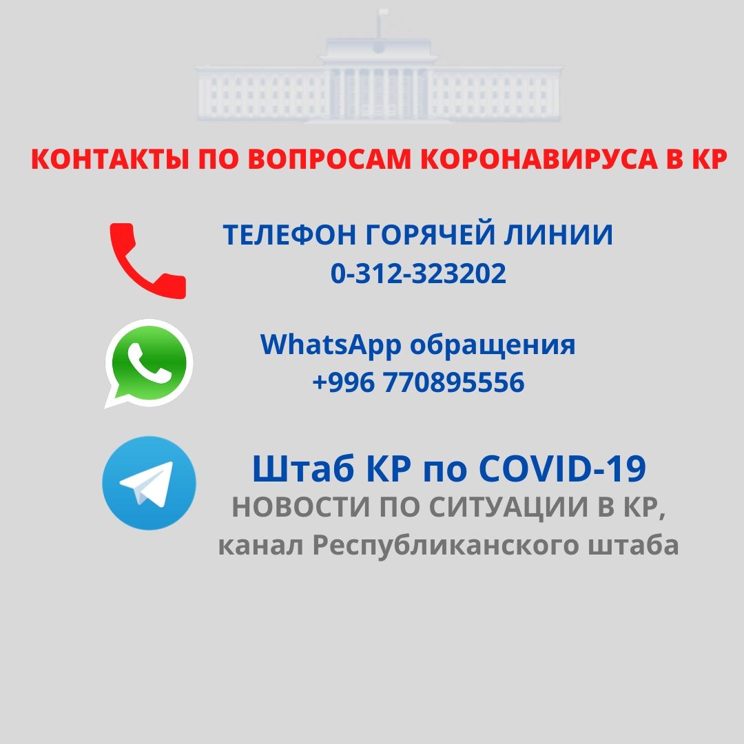 По возникающим вопросам можно также звонить на телефоны горячей линии Республиканского штаба по коронавирусу или писать на WhatsApp.