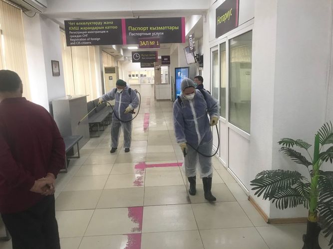 В Джалал-Абаде волонтеры Красного Полумесяца совместно с МЧС дезинфицируют автовокзалы, рынки, улицы и дома.