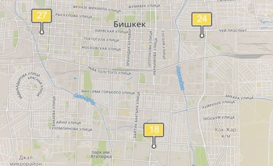 - в районе улиц Бейшеналиевой/Токтогула. Уровень загрязнения превышен в 1,09 раза: PM2.5 среднесуточный — 38 мкг/м³, на момент измерения — 27 мкг/м³;