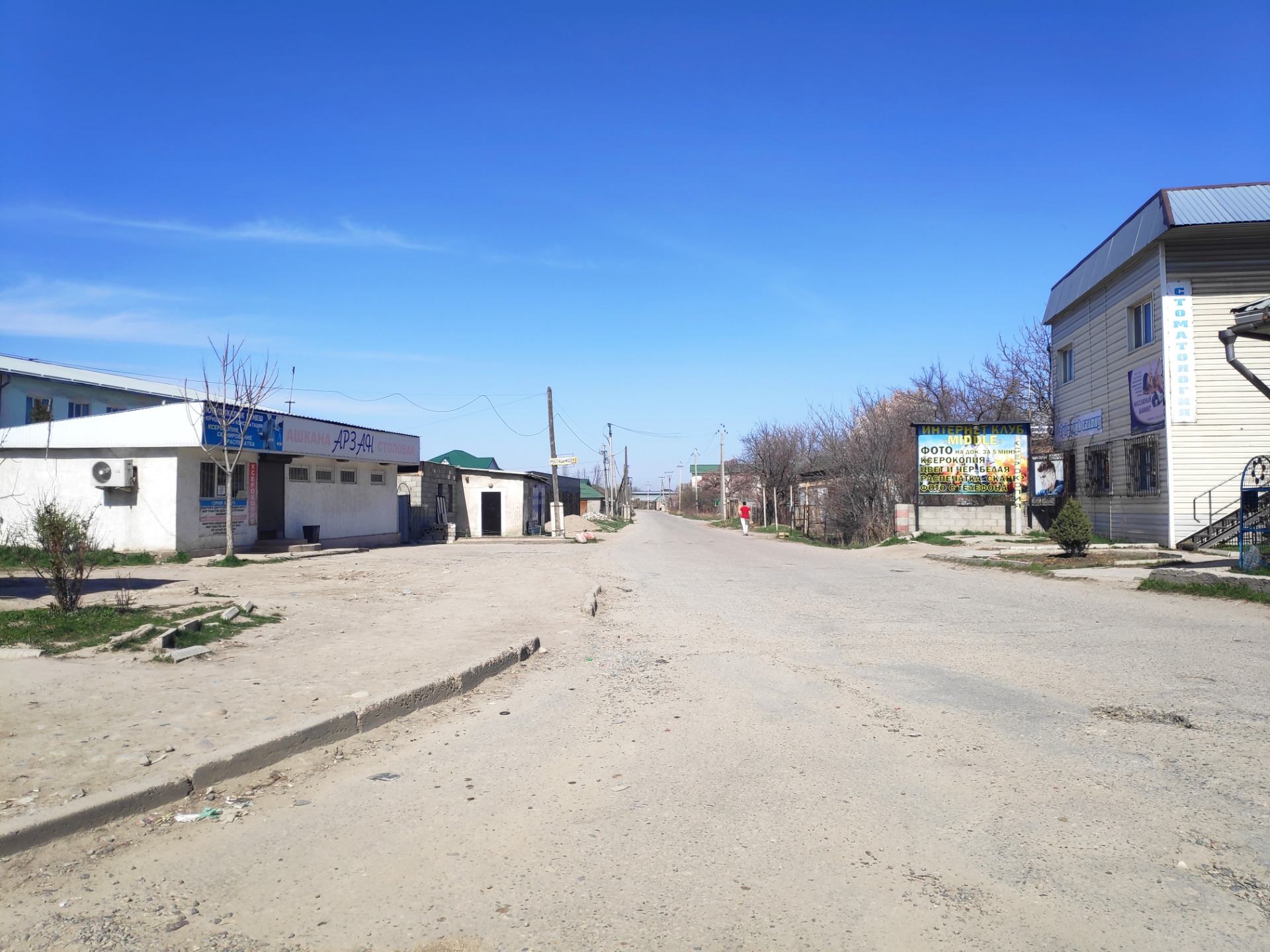 На въезде в «Энесай» установили плиты, но их можно объехать. На местных улицах немноголюдно. Жители не толпятся, видно, что идут в магазин, праздношатающихся нет.