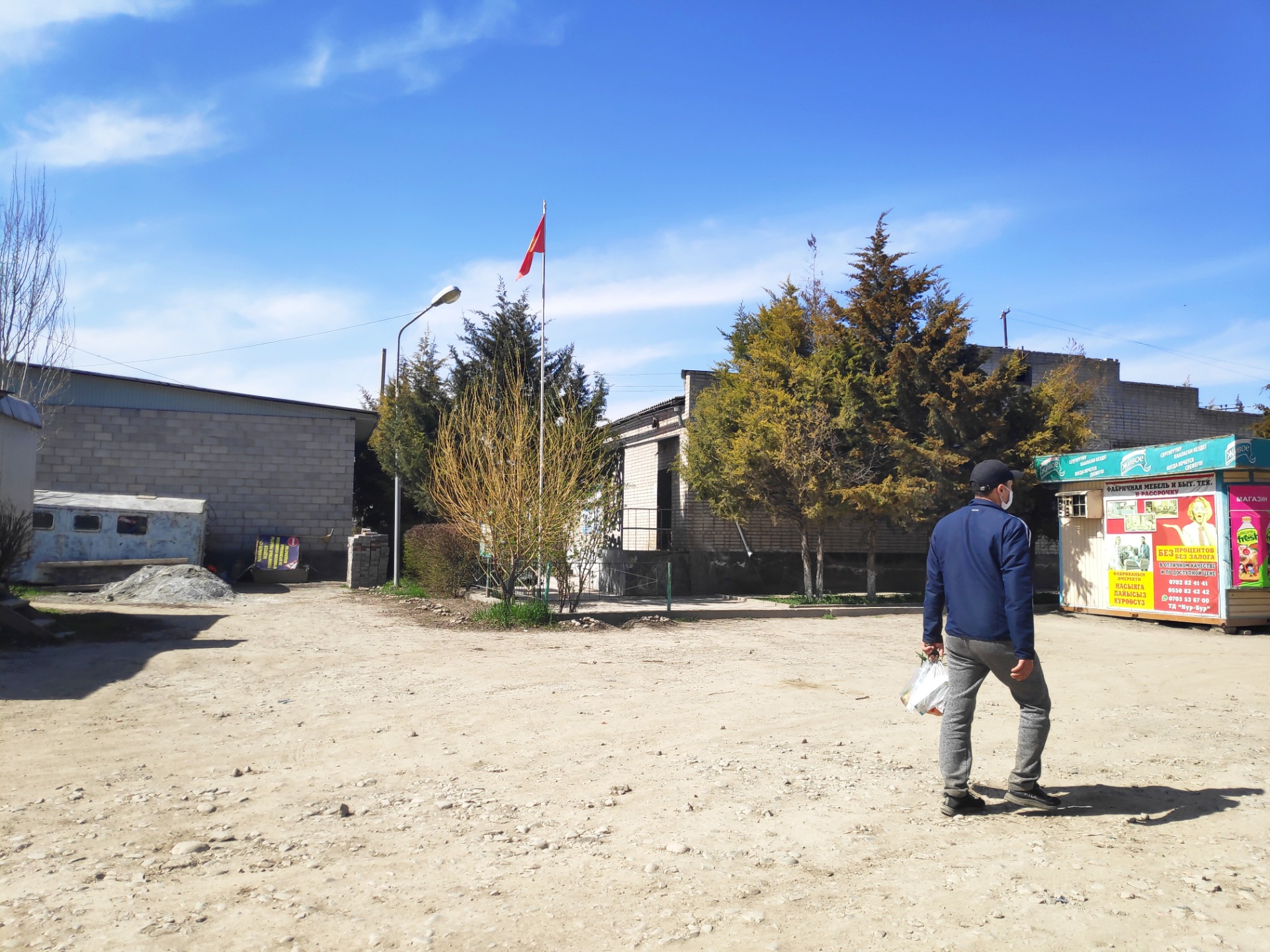 Есть и такие кварталы, где въезд не ограничен. Жилмассив «Дордой-2» не закрыт. Любой желающий может свободно въехать. На улицах гуляют дети и мамы с колясками, мужчины заняты хозяйственными делами, мальчишки идут пасти скот. Некоторые жители носят маски.