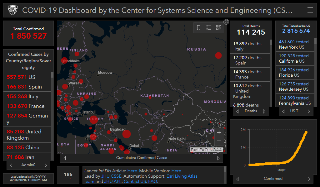 За последние сутки число людей, которые заразились новым коронавирусом, достигло 1 миллиона 850 тысяч 527. Об этом свидетельствуют данные онлайн-карты, разработанной учеными.