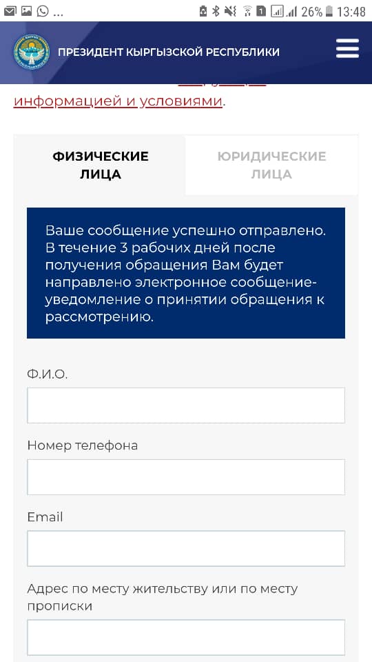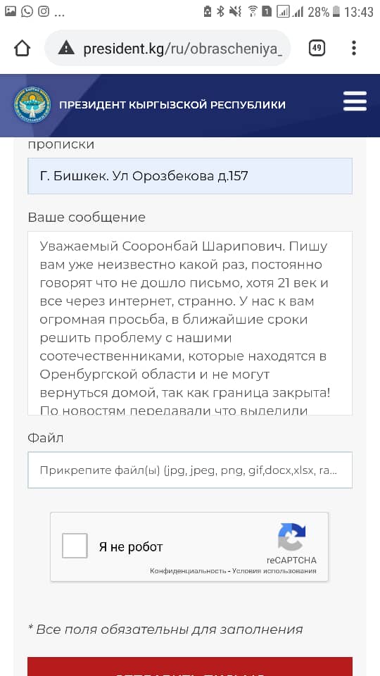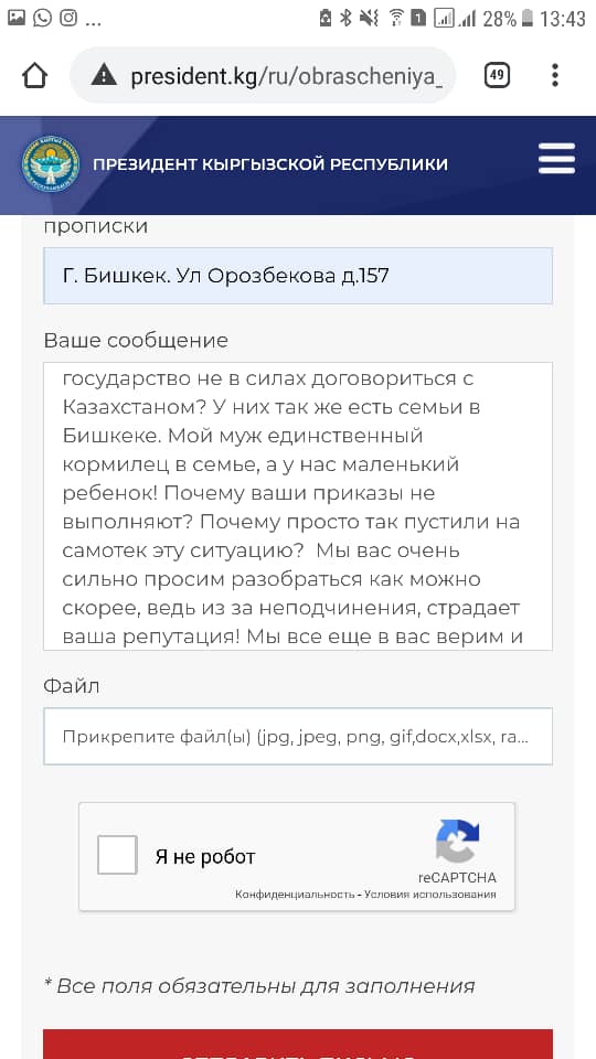 Как рассказала 24-kg.com Мария Бурховецкая, она написала уже несколько писем и отправила их на электронную почту, указанную на сайте главы государства. Однако ни на одно из них чиновники аппарата президента не ответили.