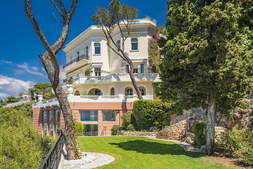 Шестиэтажная вилла площадью 1 тысячу квадратных метров расположена на возвышенности с видом на Средиземное море. Просторный участок, на котором находится пейзажный бассейн, занимает 5 тысяч квадратных метров.