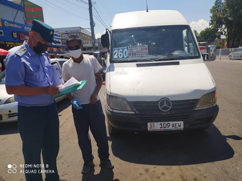 «С 1 июня сотрудники Центра госсанэпиднадзора составили 132 протокола по статье 150 Кодекса о нарушениях в отношении водителей, штраф — 132 тысячи сомов, и девять протоколов по статье 293 в отношении руководителей частных компаний перевозчиков, сумма штрафов — 117 тысяч», — рассказали в муниципалитете.