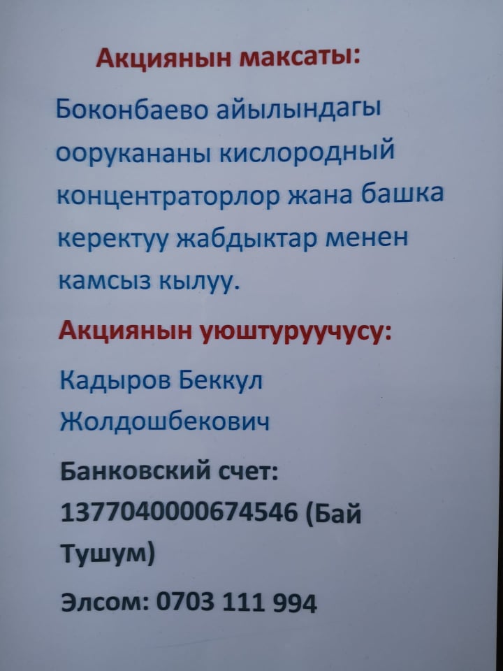 В Тонском районе местные активисты организовали благотворительную акцию для покупки кислородных концентраторов в местную больницу. Об этом 24.kg сообщил гражданский активист Мээрбек Эрдоолатов.