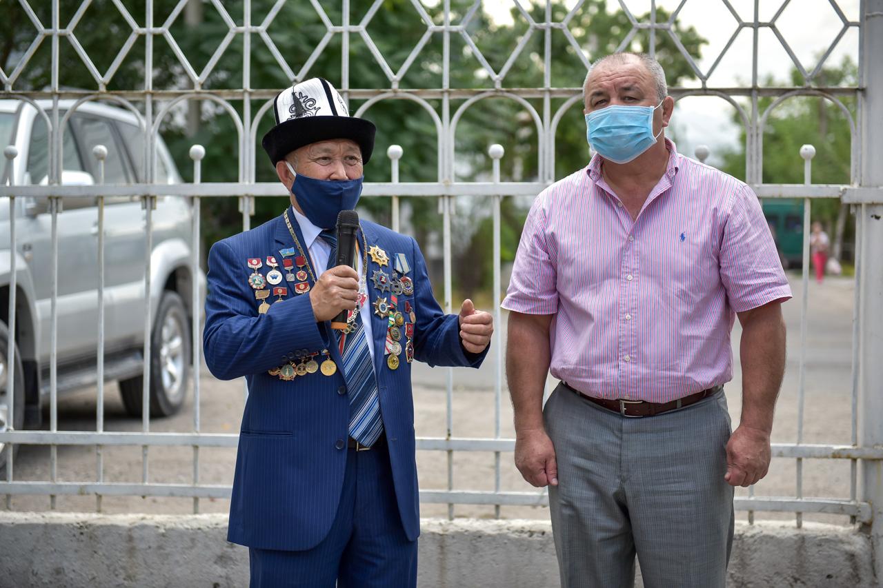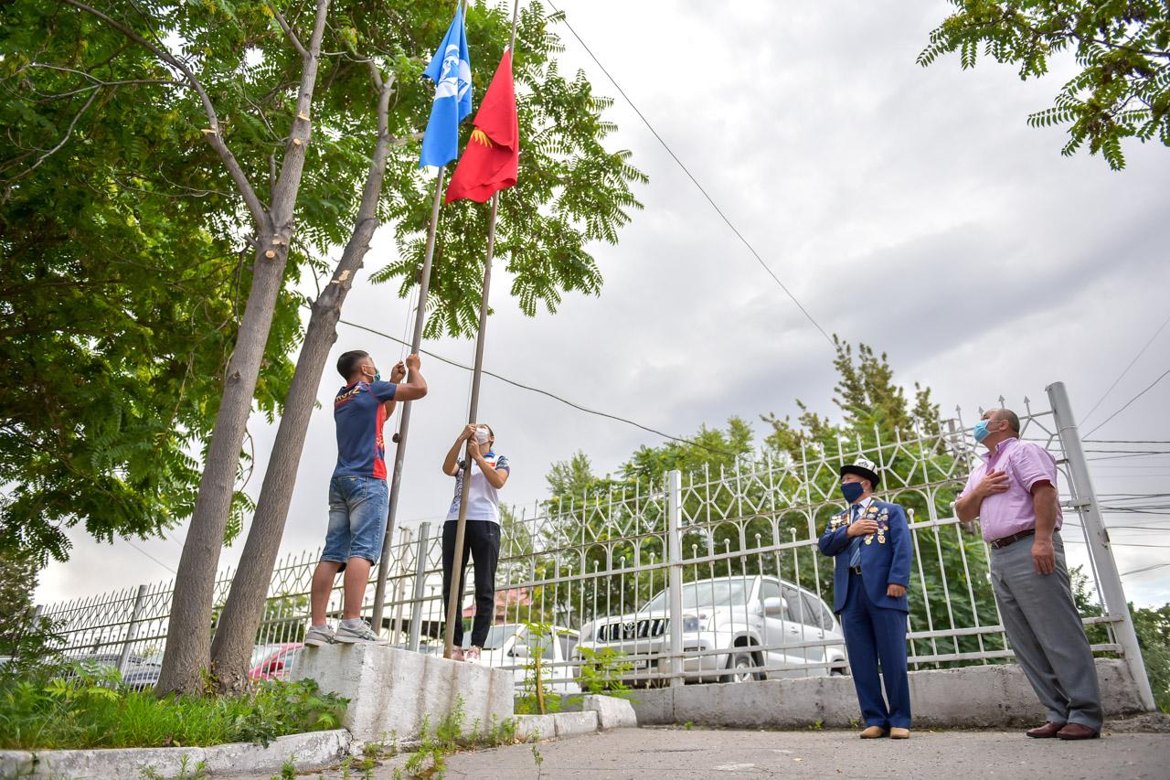Чести поднять флаг удостоились юные спортсмены Бегай Бейшеналы кызы — мастер спорта КР по дзюдо, призер международных турниров и Марлен Асыкеев — член национальной сборной команды по греко-римской борьбе, мастер спорта международного класса.