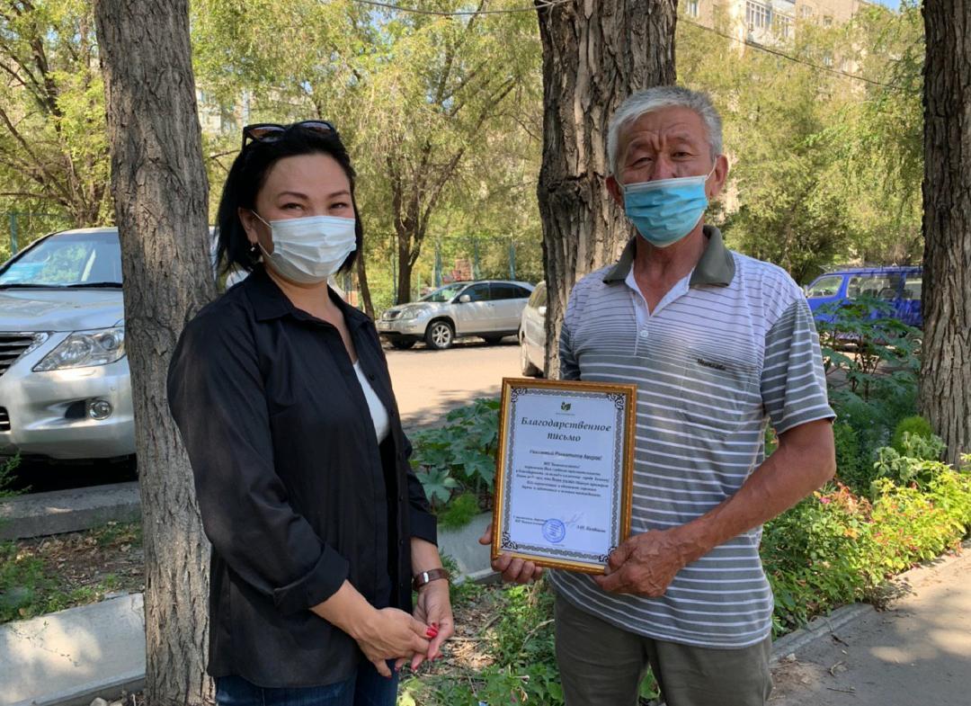 Глава муниципального предприятия «Бишкекзеленхоз» Эльнура Жолдошева вручила горожанину благодарственное письмо, садовый набор и три мешка растительного грунта из теплиц. Его также познакомили с агрономом, мастером и мирабом района, чтобы они могли поддерживать зеленую инициативу и работать вместе.