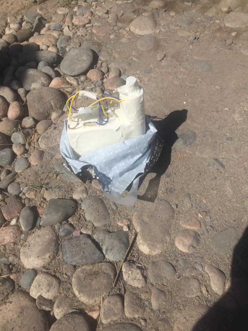 «Установлено, что гражданин Т.М. и его коллега К.К. возле забора, среди бетонных конструкций по улице Мурманской нашли черный полиэтиленовый пакет, внутри которого находился предмет, похожий на взрывное устройство. Сотрудники ГКНБ взорвали самодельную бомбу на месте. Во время осмотра места происшествия были найдены силиконовый бак, картон с мелкими камнями на дне, электропровода коричневого, желтого и синего цветов. Факт зарегистрирован в ЕРПП по статье «Незаконное изготовление оружия» УК КР», — сообщили редакции.