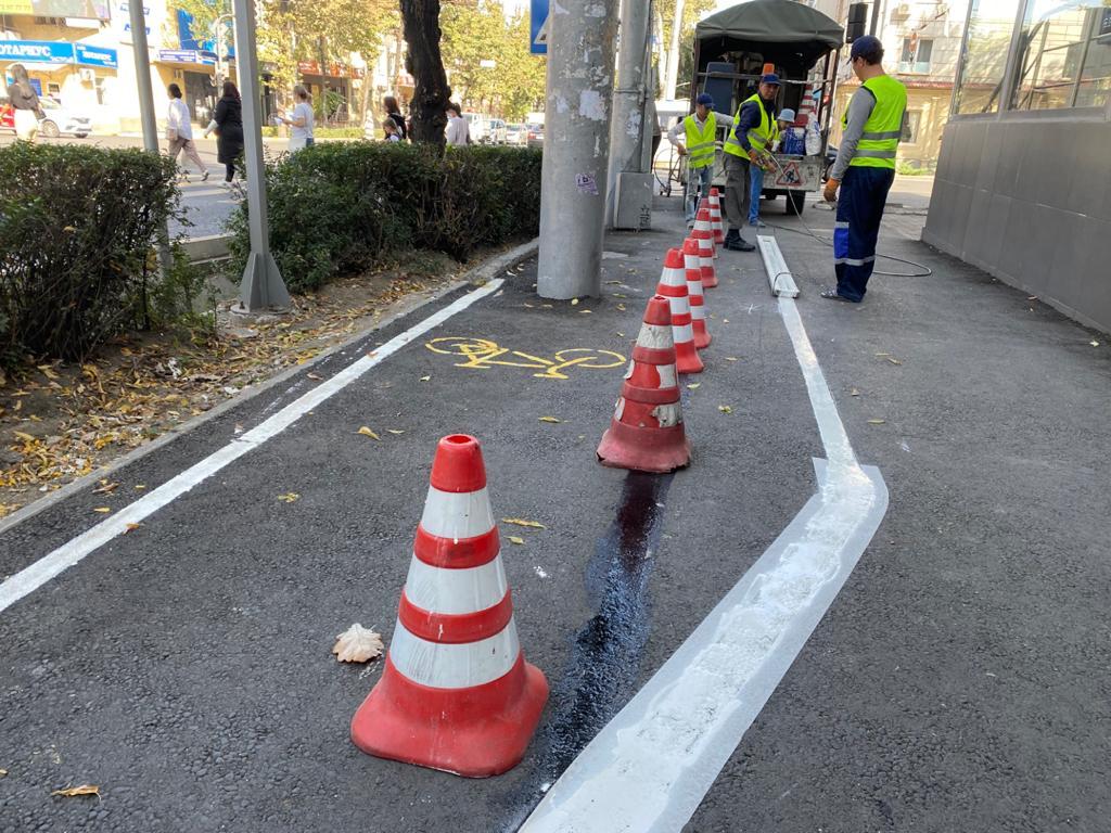 По информации муниципального предприятия «Бишкекасфальтсервис», сотрудники произвели работы по демаркировке разметки велодорожки по данному адресу.