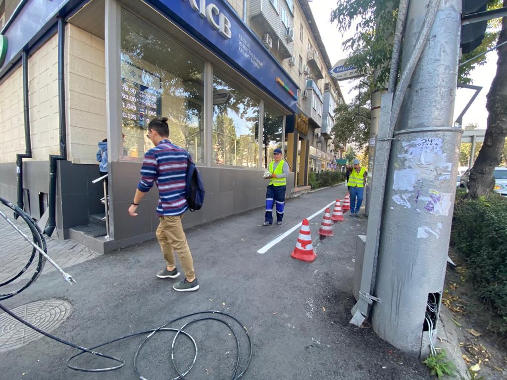 Ранее читатель 24-kg.com сообщал, что разметку на участке новой велодорожки, расположенной по проспекту Манаса, нанесли вокруг электрического столба.