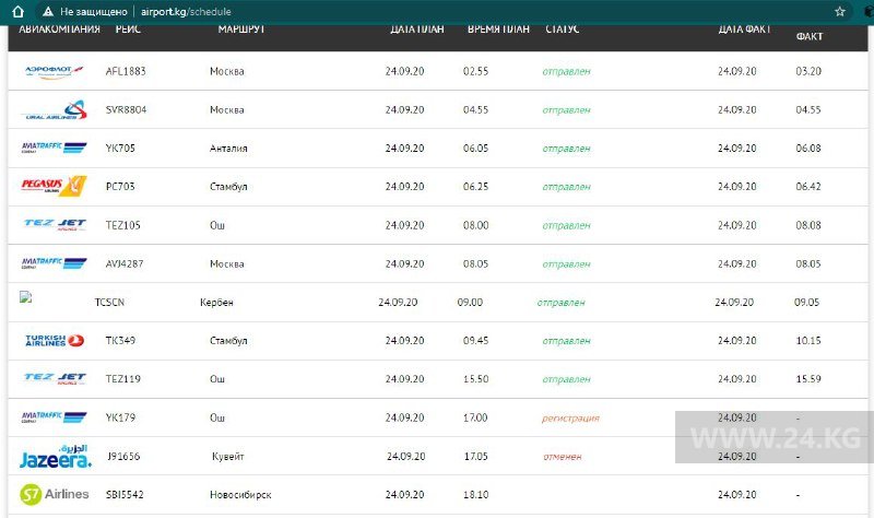 Тому свидетельство — и расписание полетов на официальном сайте аэропорта «Манас», которое показывает, что, действительно, авиакомпании осуществляют больше рейсов, чем официально заявлено. Причем летают не только в Москву и Санкт-Петербург, но и в другие города России.
