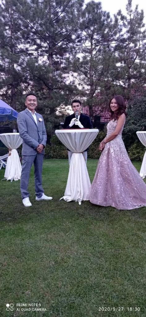 Сыграть свадьбу молодожены решили 27 сентября в Бишкеке. Пригласили только самых близких людей. «Провели небольшое тематическое торжество в стиле Disney. С организацией помогли друзья. Было очень весело и интересно. Пользуясь случаем, хотел бы поблагодарить всех тех, кто помог с организацией, а также тех, кто пришел на нашу скромную свадьбу».