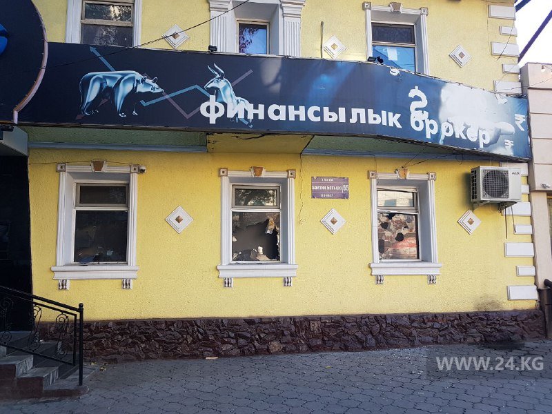 Накануне ночью митингующие разбили окна брокерской компании, расположенной на улице Абдрахманова.