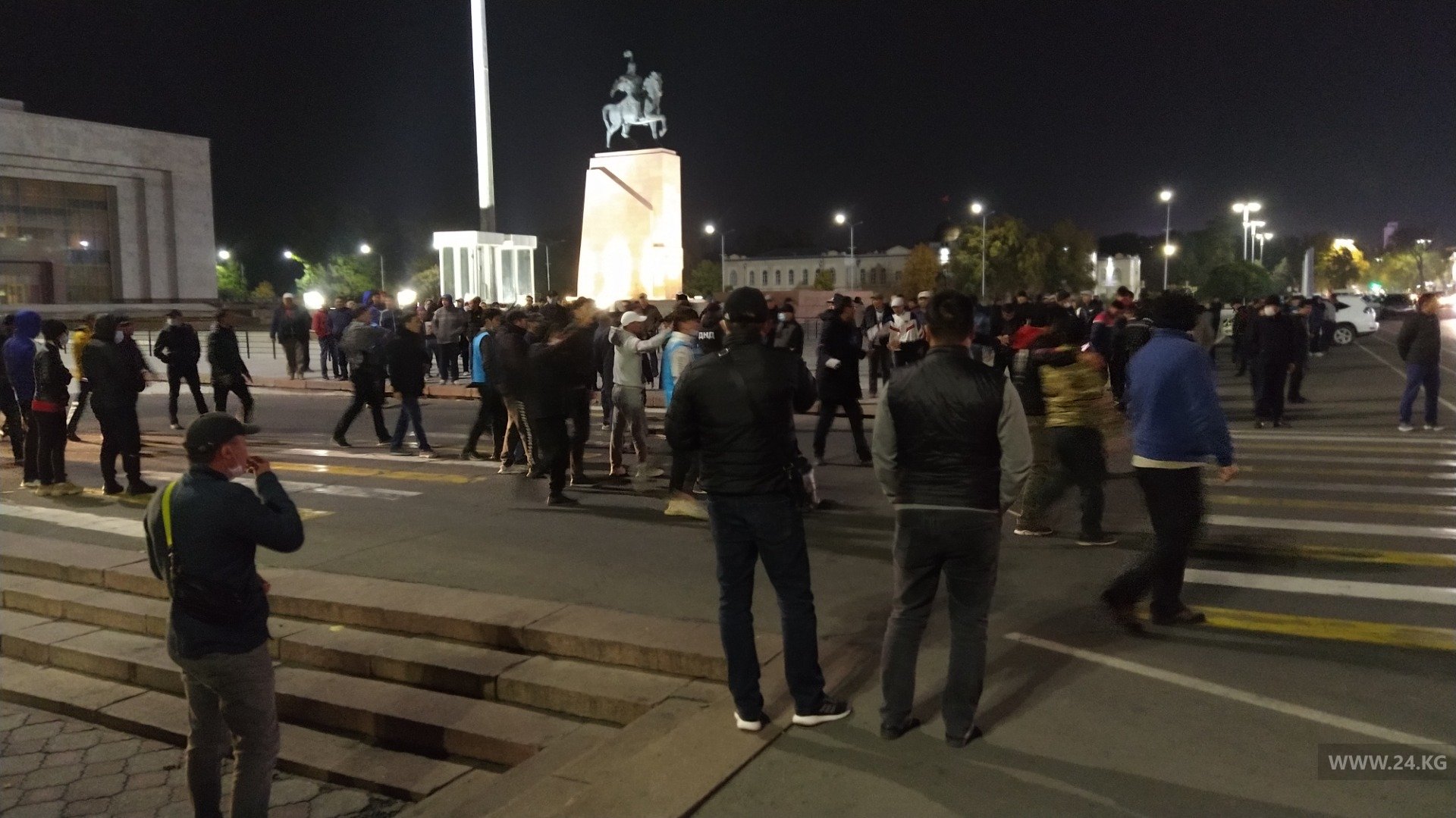 Митинг сторонников Садыра Жапарова у Дома правительства в Бишкеке закончился. Часть митингующих отказалась расходиться до тех пор, пока их требование — отставка президента Сооронбая Жээнбекова — не будет выполнено.