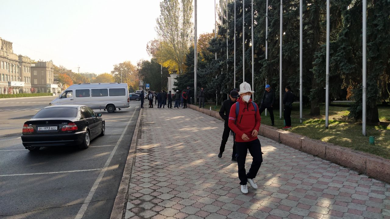 В Бишкеке у Дома правительства сторонники Садыра Жапарова вновь собираются на митинг. Подъезжают микроавтобусы и легковые машины, на которых людей организованно привозят к Старой площади. Представителей правопорядка, несмотря на то что в Бишкеке введен ограничивающий массовые собрания режим ЧП, нет.
