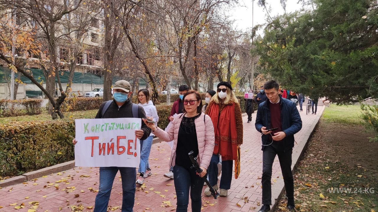 В Бишкеке проходит мирный марш против изменения Конституции. На акцию возле железнодорожного вокзала собралось около 20 человек.