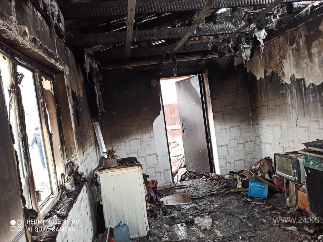 В жилмассиве «Бакай-Ата» у семьи с тремя детьми полностью сгорел дом. Об этом 24-kg.com сообщила пострадавшая Жылдыз Кулжабаева.