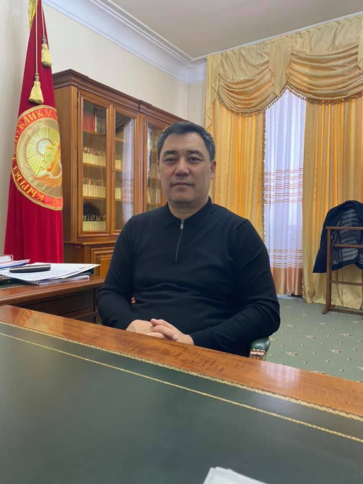 «Рядовой гражданин по имени Садыр Жапаров носит с собой штандарт президента Кыргызской Республики. Он должен был передать его исполняющему обязанности главы государства Таланту Мамытову. Но в кабинете последнего его нет», — пишет он.