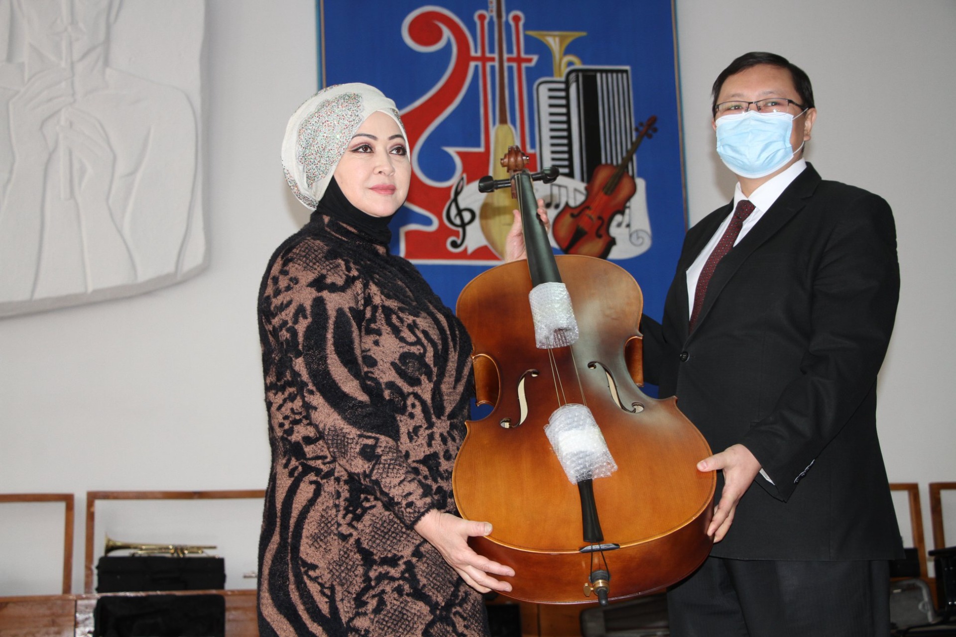 По ее информации, музыкальные инструменты были приобретены в рамках технического гранта КНР на сумму 2 миллиона 407 тысяч сомов. В их числе фортепиано, аккордеон, кларнет, флейта, труба, прима-кыяк, виолончель, скрипка, саксофон и гитара.