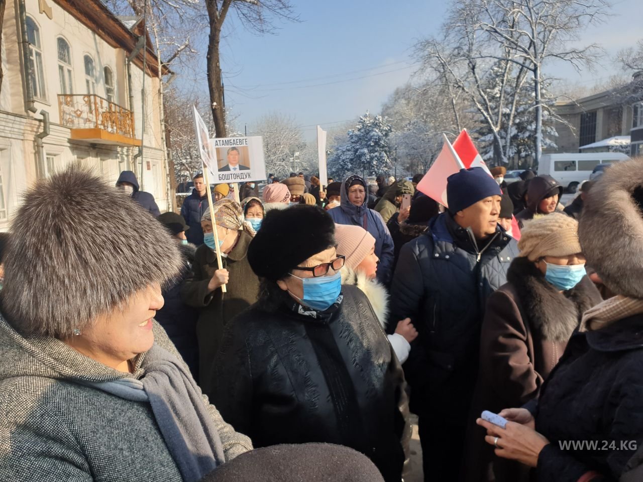 В Бишкеке около здания Верховного суда проходит митинг сторонников бывшего президента Алмазбека Атамбаева.