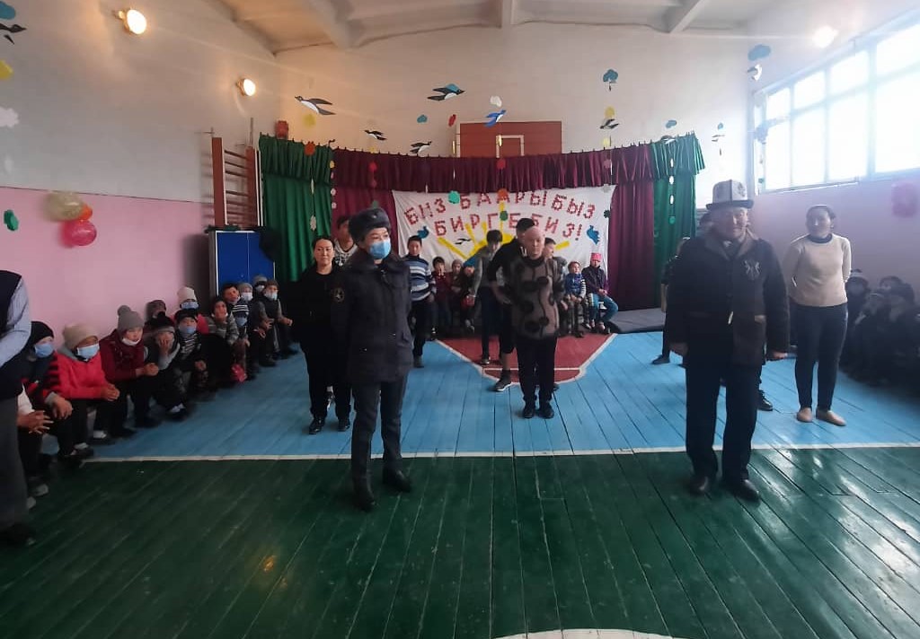 По ее данным, сотрудники правоохранительных органов собрали 5 тысяч сомов для общеобразовательной школы имени Ниязова. Для детей организовали концертную программу.