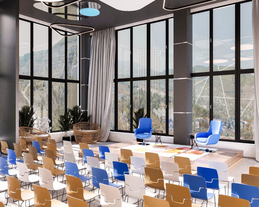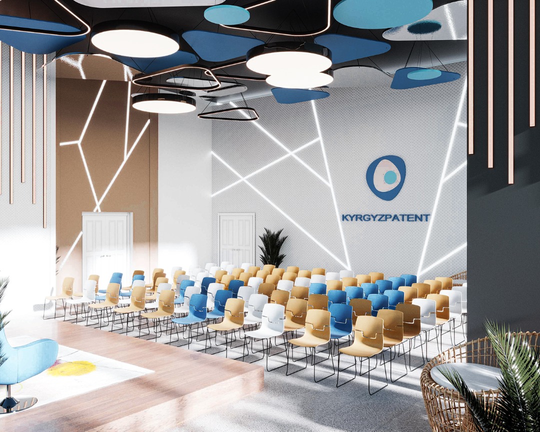 Конференц-зал хотят оборудовать для Кыргызпатента, его логотип указан на эскизах.