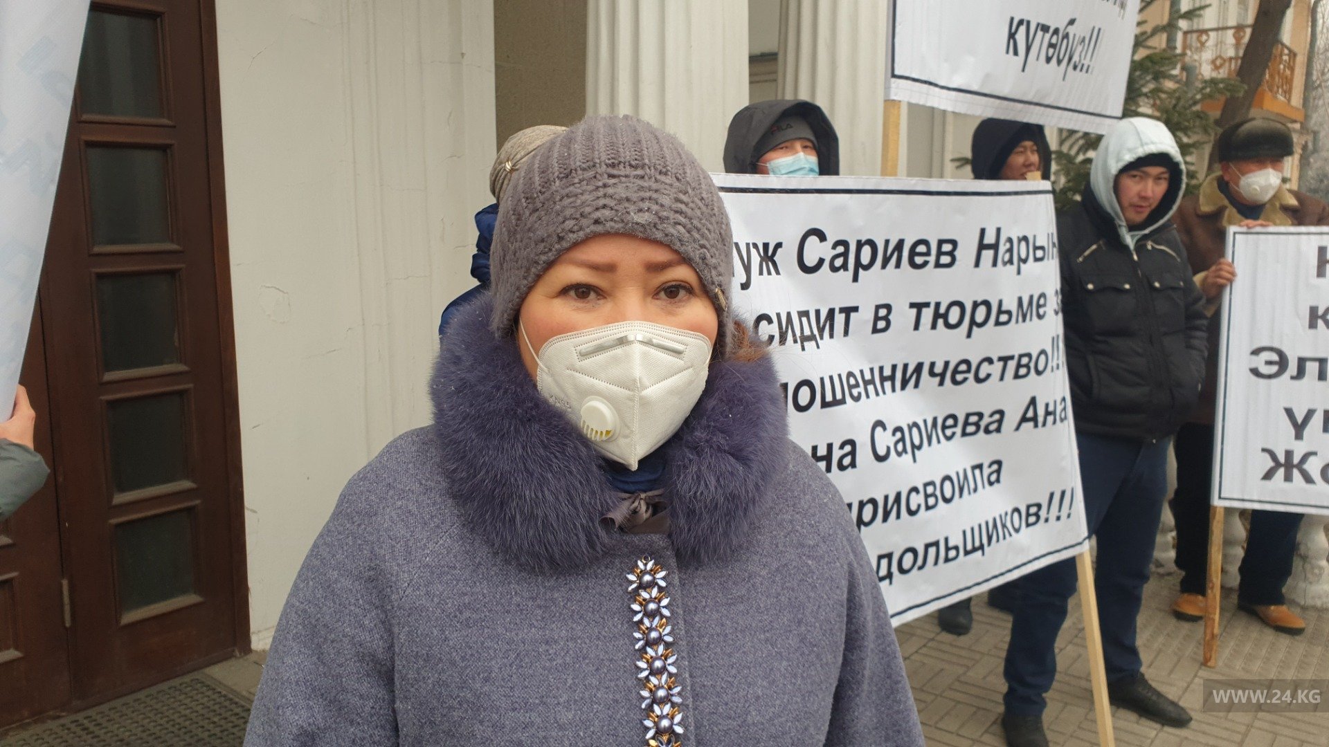 «Мы оплатили полностью за квартиры в доме, расположенном на улице Токомбаева. Там должны были построить десятиэтажный дом, но в итоге построено всего пять этажей. Все это произошло потому, что Нарынбек Сариев вложил деньги в предвыборную кампанию. Пять лет назад он хотел пройти в парламент. Мы подали в суд на Нарынбека Сариева. В течение пяти лет 140 пострадавших дольщиков живут на съемных квартирах. За это время несколько человек умерли на нервной почве. Сейчас на объекте все растаскивают», — сказала Гульмира Оболбекова.