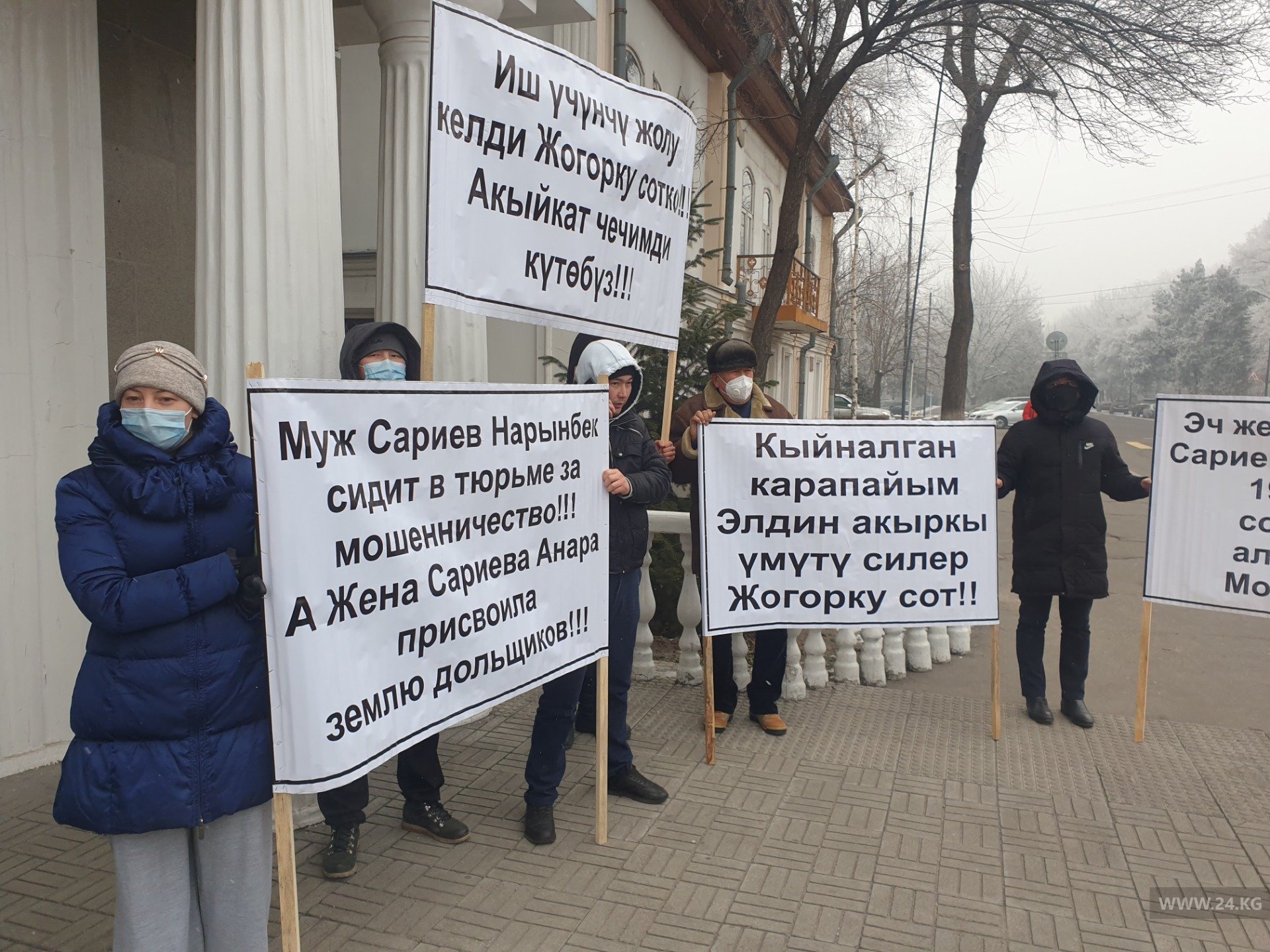 Участники акции протеста заявили, что уже пять лет судятся с учредителем фирмы Нарынбеком Сариевым.
