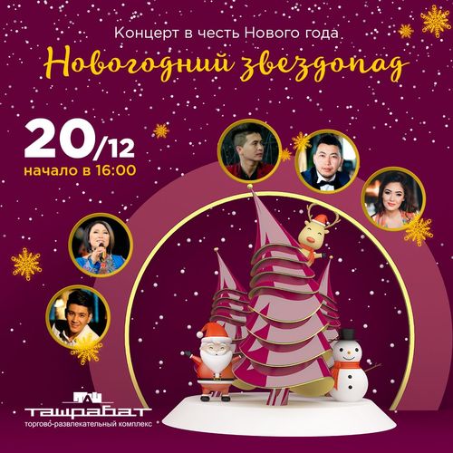 В честь наступающего Нового года пройдет концерт с участием звезд эстрады. Ведущий — Нурадил Канкулиев.