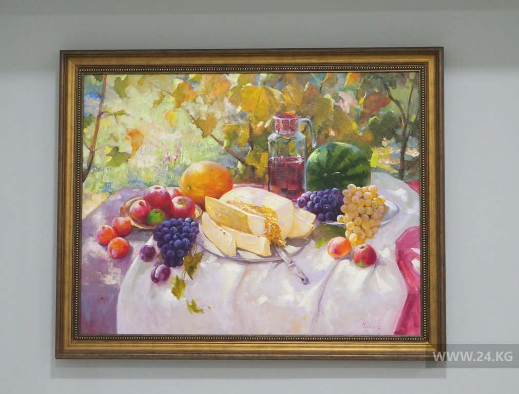 В экспозиции представлены более 30 живописных работ четырех художников: Алмаза Шаршекеева, Сансыза Мирзираимова, Нурбека Матаева и Чынгыза Ормонбекова.