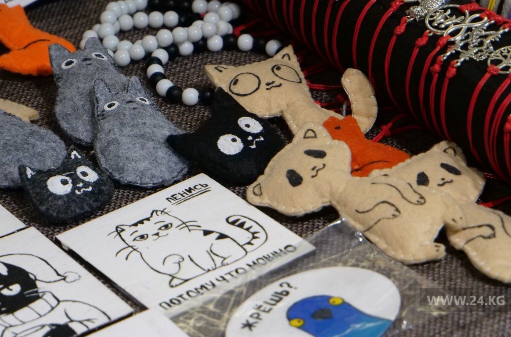 На ярмарке вы можете приобрести подарки для близких и себя. Здесь представлены работы известных художников КР, ювелирные изделия, одежда и предметы быта, сувениры, игрушки, сумки и многое другое.
