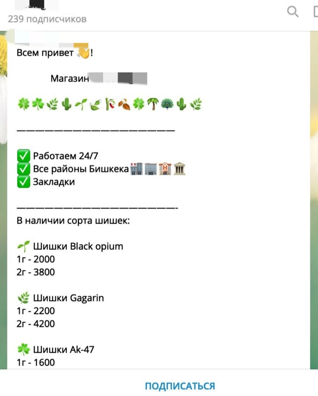 Стоит отметить, что ссылка, указанная в Instagram, действительно, ведет к Telegram-каналу, где торгуют наркотиками.