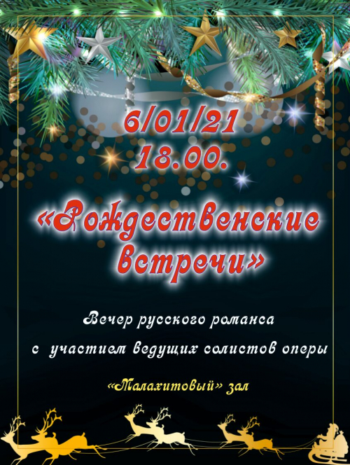 6 января в Малахитовом зале Кыргызского театра оперы и балета пройдет вечер русского романса с участием ведущих солистов оперы «Рождественские встречи».