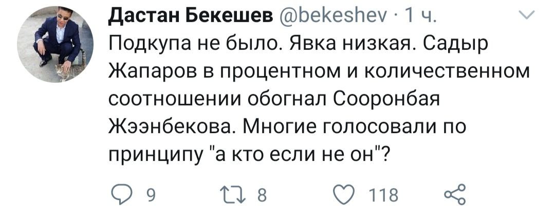Есть и те, кто принял победу Садыра Жапарова. И даже поздравил фаворита гонки.