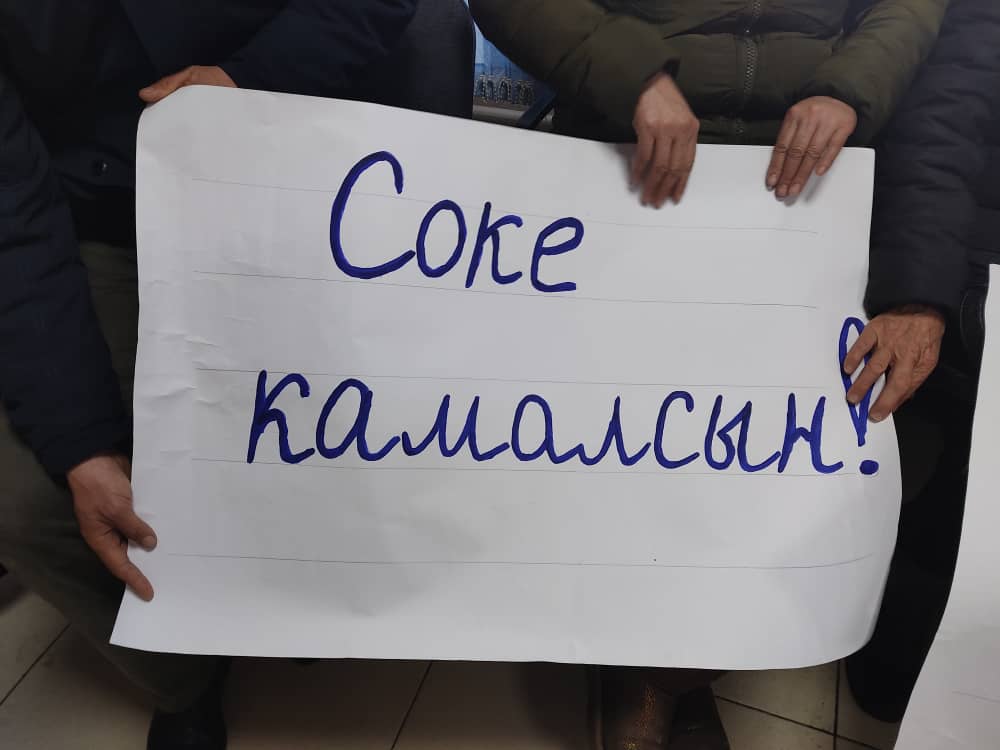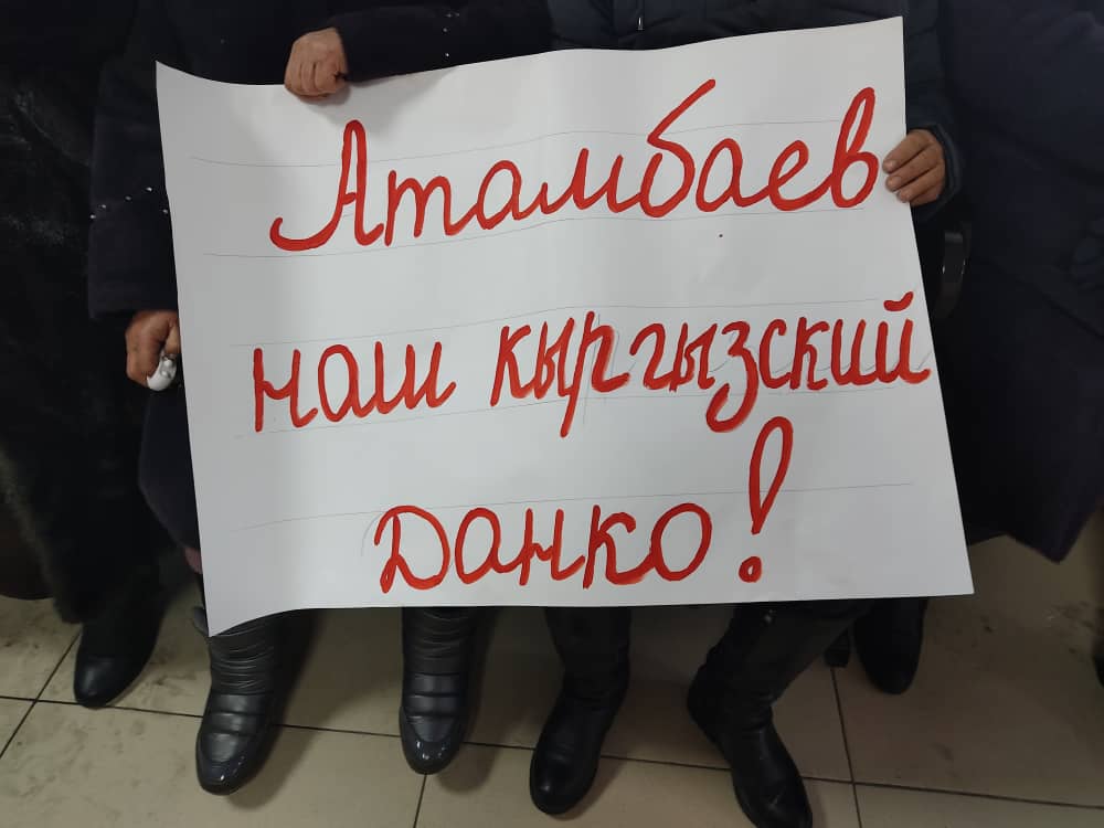 Сторонники бывшего президента Алмазбека Атамбаева устроили митинг в здании суда. Около 30 человек требуют его освобождения. На плакатах также написано требование об аресте экс-главы государства Сооронбая Жээнбекова.